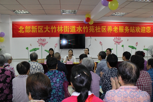 7月15日上午,大竹林街道首个社区养老服务站---水竹苑社区养老服务站正式启动运营。北部新区社保局,大竹林街道,重庆如恩健康管理有限公司,水竹苑社区以及居民代表80多人参加了启动仪式。大竹林水竹苑养老服务站于2014年9月建成,总投资14万元,建筑面积约300平方米,设有“四室一堂”(日间休息室、休闲娱乐室、图书学习室、健身康复室和老人饭堂),是具有多功能性、全面性、文化娱乐性等性质的居家养老服务站。养老站主要是为社区老年人提供标准化、规范化、安全健康的日间照料服务,确立了康复保健服务、居家上门服务、剪发理发服务、休闲娱乐服务服务等服务项目。启动仪式后,居民代表现场体验了各项服务,并表示,服务站的运营,为辖区老年人实现“老有所乐”提供了有效途径。