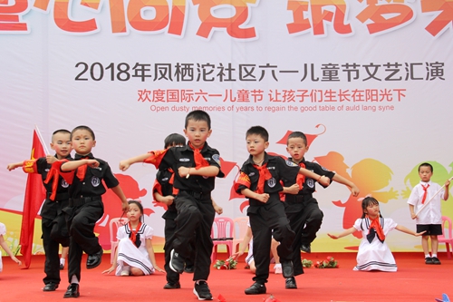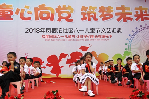 5月31日下午,凤栖沱社区携手绿色幼儿园在社区文化广场举行“六一”儿童节文艺汇演。幼儿园的娃娃、家长和热心居民500余人欢聚一堂,满怀喜悦,共同庆祝2018年“六一”儿童节。