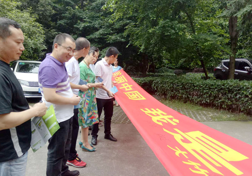活动中,志愿者们向过往市民发放环保宣传册,让广大市民知晓环境保护的重要性。随后,参与活动人员在环保横幅上郑重写下自己的名字,履行一份自己的环保承诺。最后,志愿者们到街上拾取白色垃圾,践行自己的那份环保承诺。