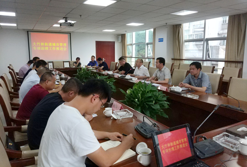 6月11日下午,大竹林街道召开城市管理专项治理工作推进会,街道办事处主任陈斌、城市管理工作分管领导黄治庆,城市管理综合执法大队、园林绿化环卫所、市场化公司负责人以及相关工作人员参会。会议由分管领导黄治庆主持。