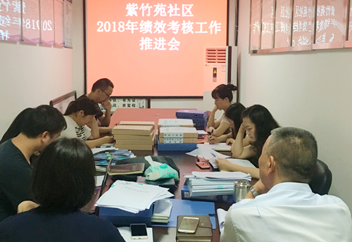 6月25日下午,紫竹苑社区召开2018年绩效考核工作推进会。会上,社区工作人员对上半年的工作完成情况进行了详细汇报,对完成绩效考核目标任务中存在的问题和困难进行了说明。社区党总支书记、居委会主任仔细查看了工作资料并提出具体意见和建议。???