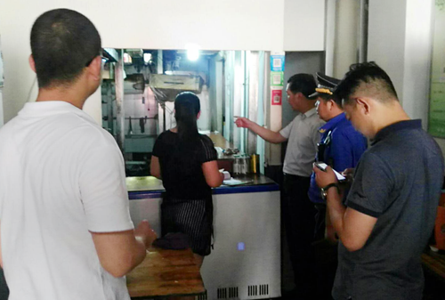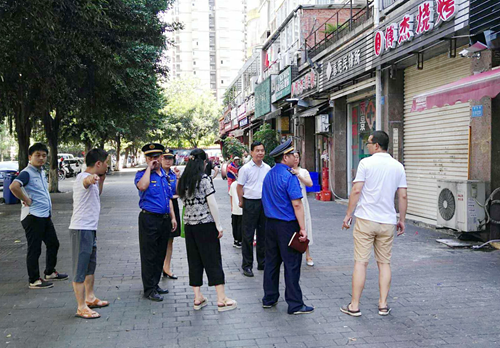 ??? 为进一步解决辖区油烟扰民投诉率居高不下的状况,切实提升胡杨路、雪松路周边人文居住环境。6月28日,大竹林街道城市管理工作分管领导、武装部部长黄治庆带队,由区环保分局、市场监管局以及街道环卫所、城管执法大队、汪家桥、星汇社区工作人员组成的联合执法组开展了餐饮油烟扰民综合整治行动。