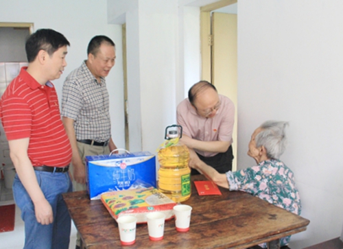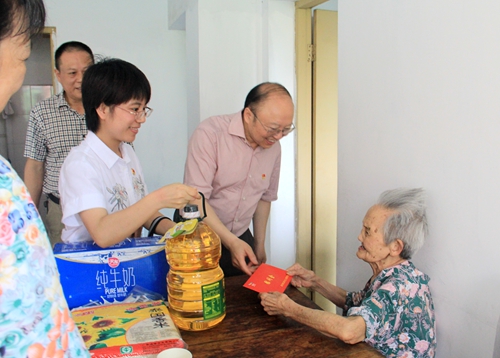 7月2日上午,两江新区管委会副巡视员周建明到大竹林街道水竹苑社区慰问老党员黎文芳。周建明同志亲切询问了黎文芳老人的身体、生活情况,并代表新区送上了慰问金及米、油、牛奶等慰问品。黎文芳老人及家人非常感谢组织的关心,其家人说:老人虽然年纪大了,但仍然通过报纸、电视等渠道关心国家大事,注重自觉加强学习。街道党工委书记鲁松、副书记杨红军陪同慰问。(作者:幸 ?青)
